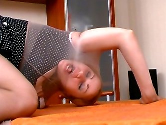 Freaky chick doing dirty things with her legs and head clad in pantyhose