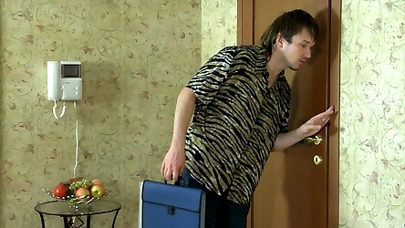 Tempting blonde in sheer gartered nylons talked into quickie in the kitchen